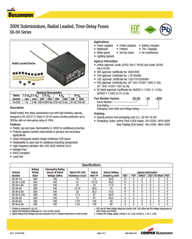 产品名称: SS-5H-1A-APH 300V 方形 高分断 黑色保险丝