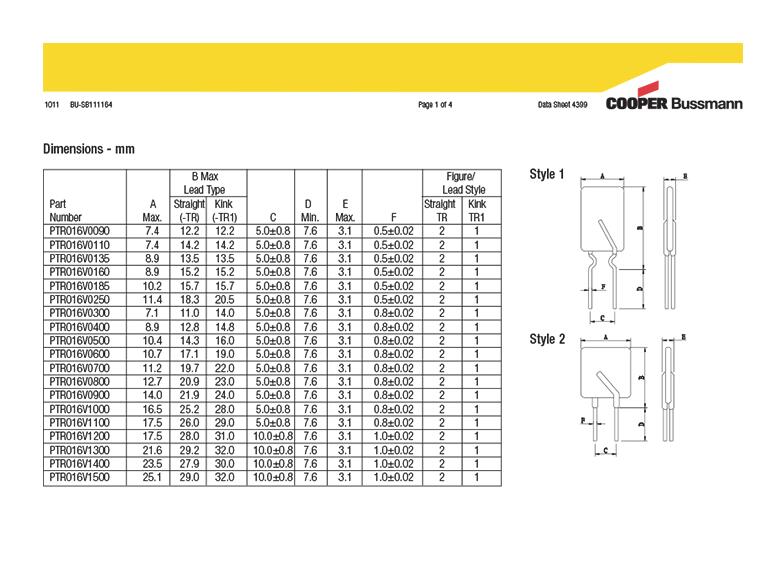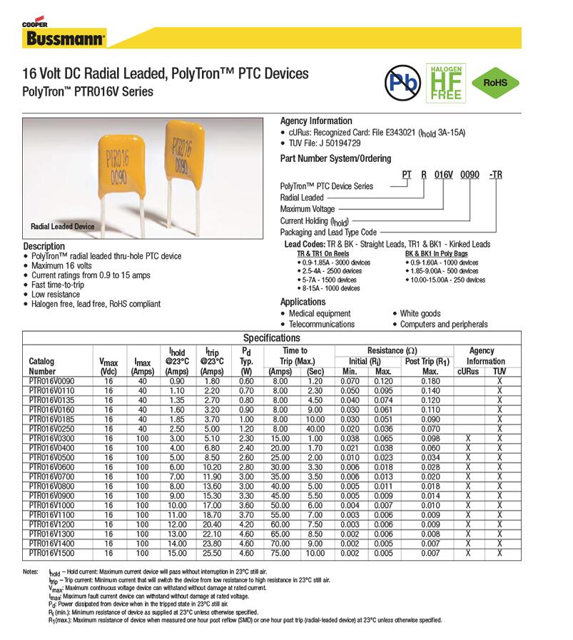 产品名称: PTR016V0090 自恢复插件保险丝 黄色可恢复