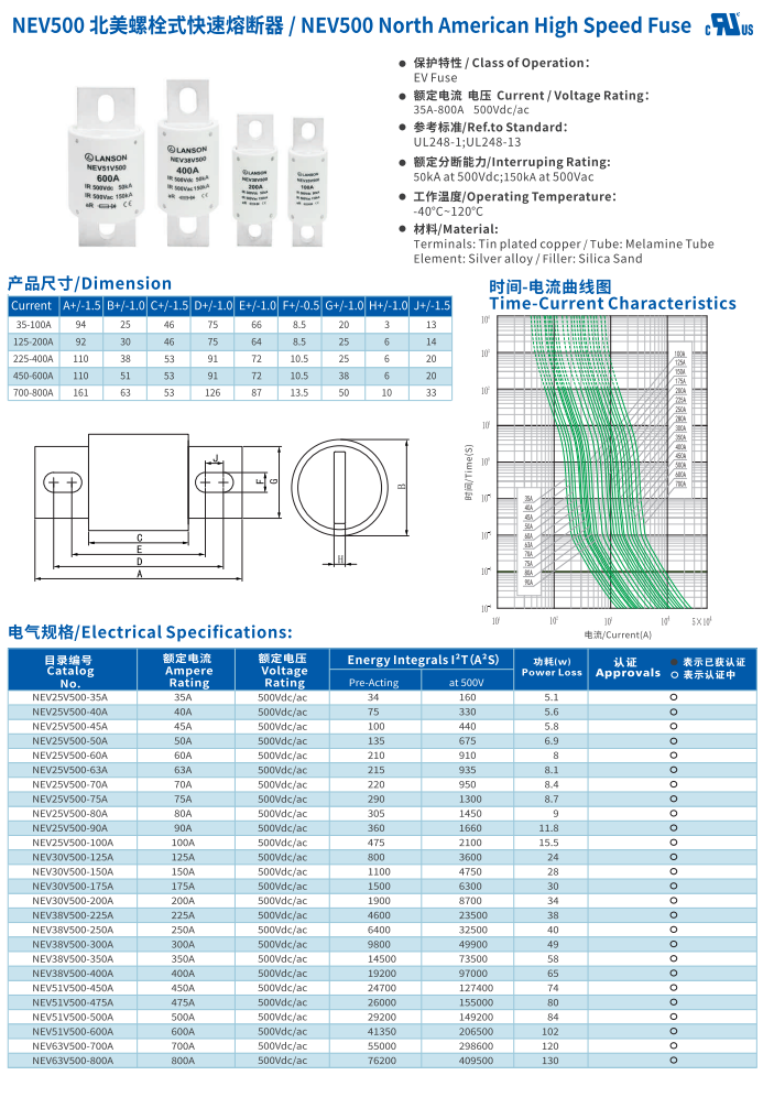 简述: 北美螺栓式快速熔断器NEV500 North American High Speed Fuse