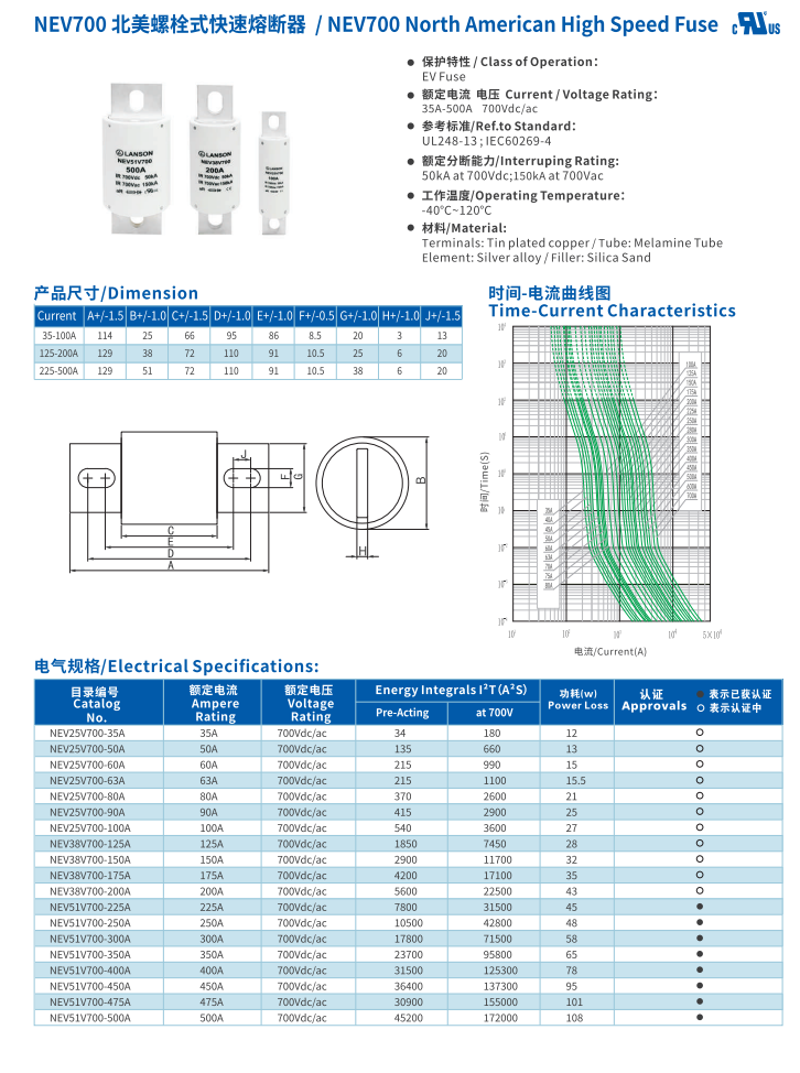 简述: 北美螺栓式快速熔断器NEV700 North American High Speed Fuse