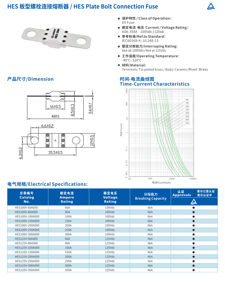 产品名称: 板型螺栓连接熔断器HES Plate Bolt Connection Fuse