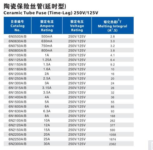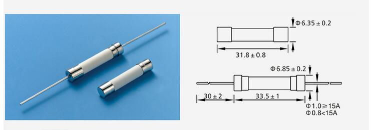 产品名称: 6N Φ6.35×32陶瓷慢断保险丝