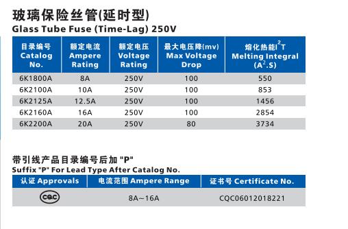 产品名称: 6K Φ6.35×32 玻璃慢断保险丝