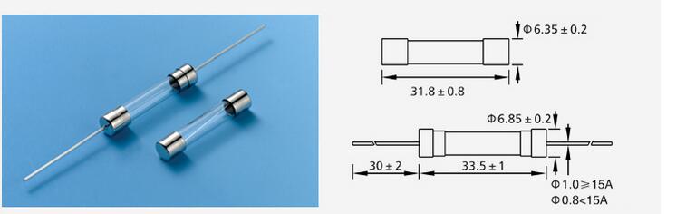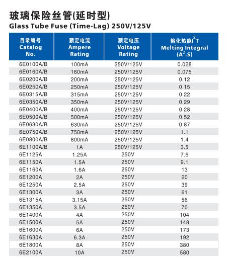 产品名称: 6E Φ6.35×32 玻璃慢断保险丝