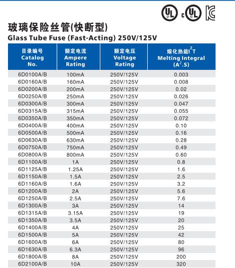 产品名称: 6D Φ6.35×32 玻璃快断保险丝