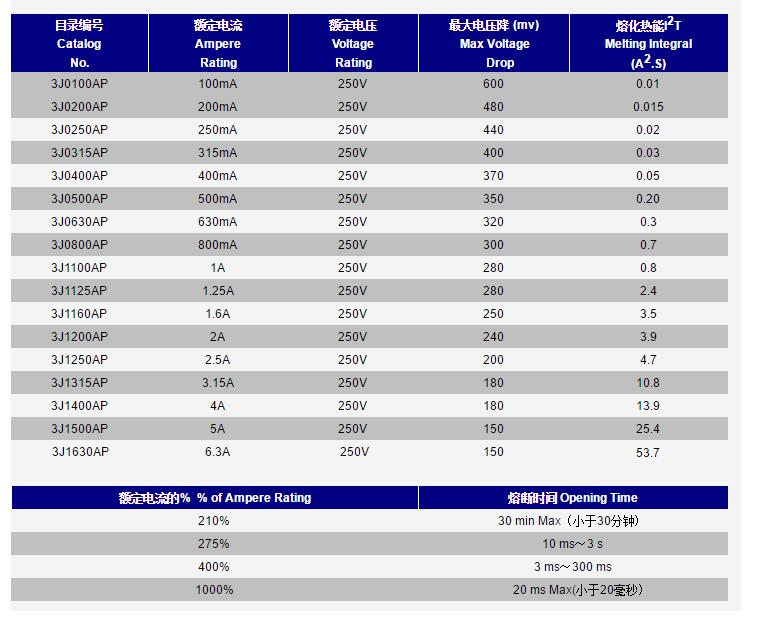 产品名称: 3J 3.6*10 玻璃快断保险丝