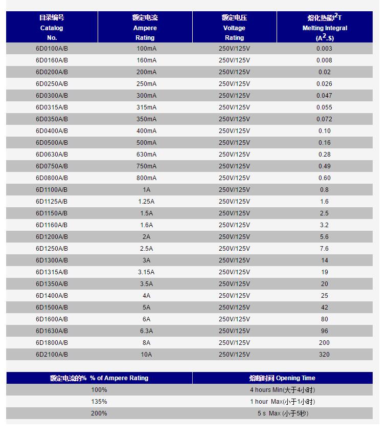 产品名称: 6D 6.0*30mm快断玻璃保险丝