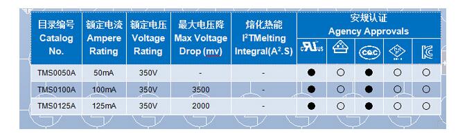 产品名称: TMS方形塑封微型保险丝(350V 慢断 UL/cUL)