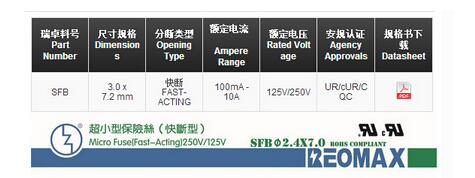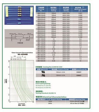 产品名称: 电阻式保险丝SFB 3.0*7.2mm 环氧涂层(快断型)