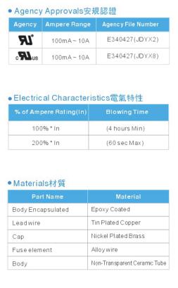 产品名称: 电阻式保险丝RFP 4.0*12mm 350V 环氧涂层(快断型)