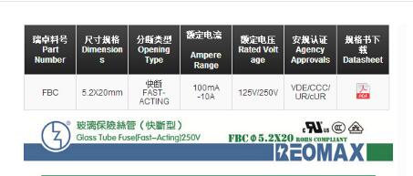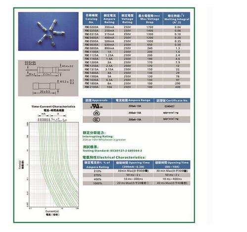 产品名称: FBC 5.2*20 玻璃快断保险丝