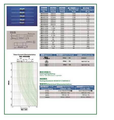 产品名称: TBC 5.0*20玻璃慢断保险丝
