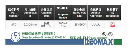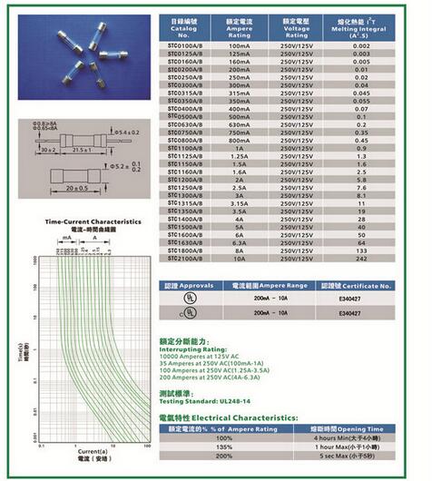 产品名称: STC 5.2*20 玻璃慢断保险丝