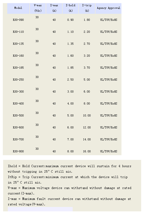 简述: 自恢复保险丝是一种过流电子保护元件,采用高分子有机聚合物在高压、高温,硫化反应的条件下,搀加导电粒子材料后,经过特殊的工艺加工而成。传统保险丝过流保护,仅能保护一次,烧断了需更换,而自恢复保险丝具有过流过热保护,自动恢复双重功能。在习惯上把 PPTC(Polymer PositiveTemperature Coefficient)也叫自恢复保险丝。