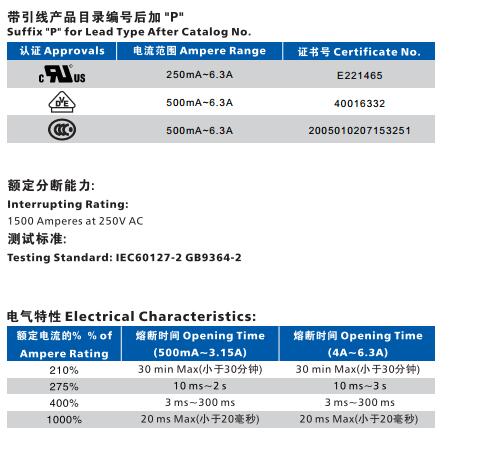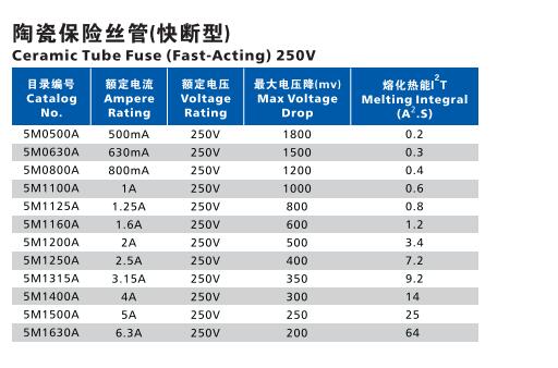 产品名称: 5M Φ5.2×20 高分断陶瓷快断保险丝