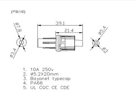 产品名称: H3-5(引线式) 保险丝座(引线式)|汽车保险丝座H(引线式)|保险丝盒(引线式)