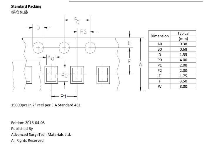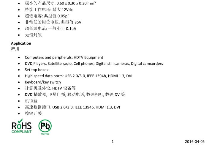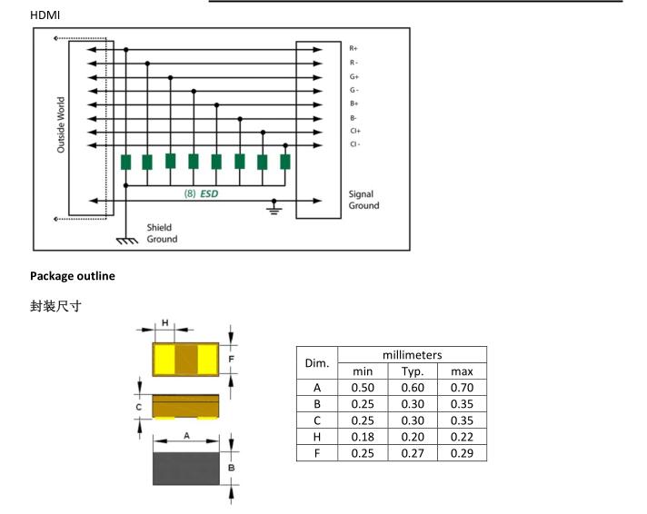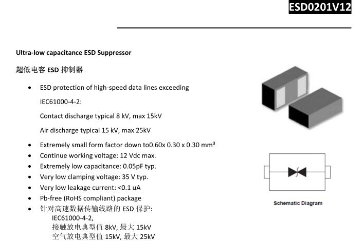 简述: ESD suppressor with Polyimide package. 0201 chip size.