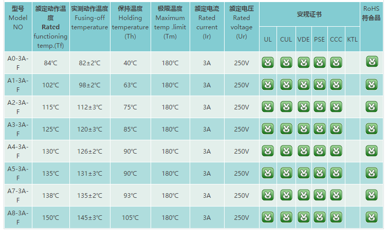产品名称: A-3A-F 方壳温度保险丝 3A系列