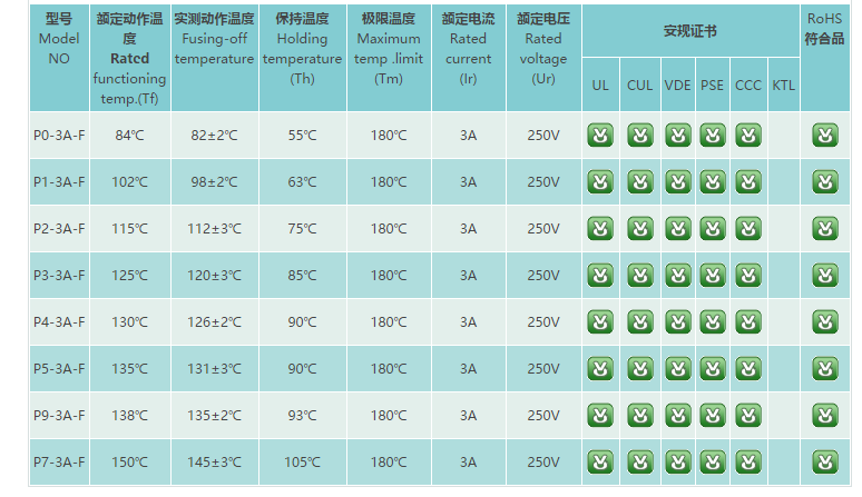 产品名称: P-3A-F陶瓷温度保险丝 3A系列