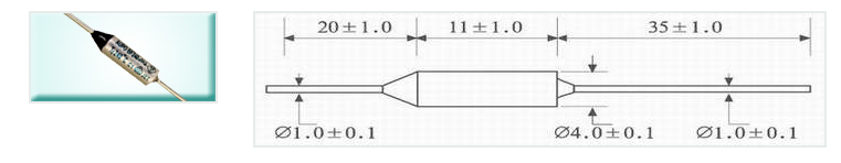 简述: 有机物型温度保险丝 由可动触点(sliding contact)、 弹簧(spring)、可熔体构成。在温度保险丝启动之前电流从左侧引线流向可动触点(sliding contact),通过金属外壳向右侧引线流动。在外部温度达到预定温度时有机物可熔体熔化,压缩弹簧会变松 。即弹簧膨胀,可动触点与左侧引线分离。回路被打开,可动触点(sliding contact)与左侧引线间电流被切断。