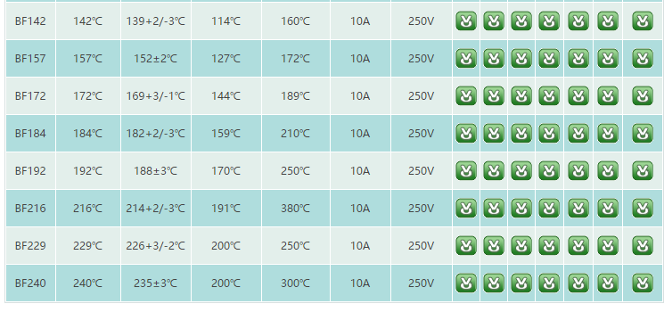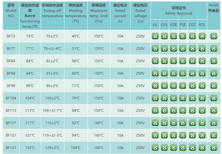 产品名称: BF 金属子弹头温度保险丝 10A系列