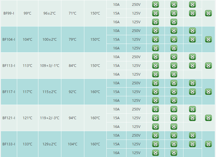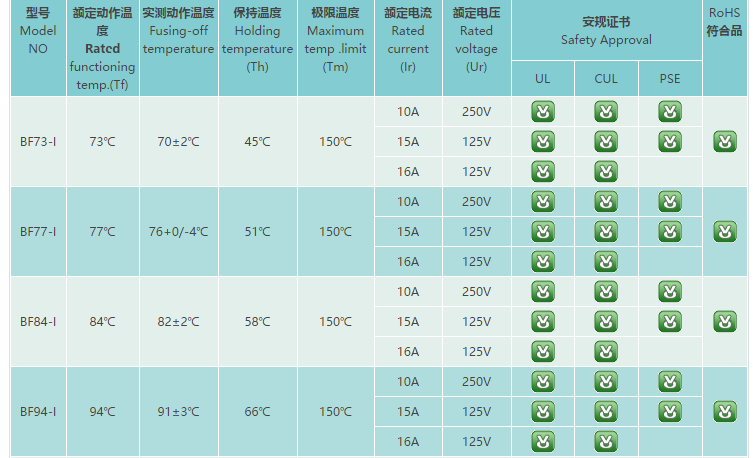 产品名称: BF-I 金属子弹头10A 15A 16A温度保险丝