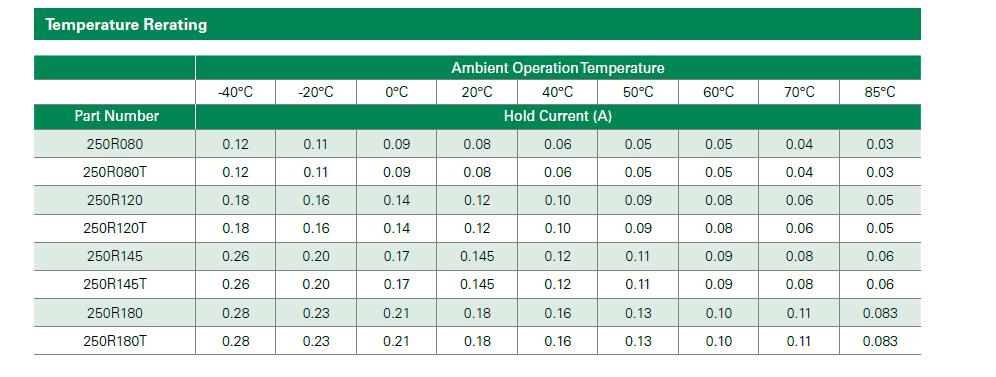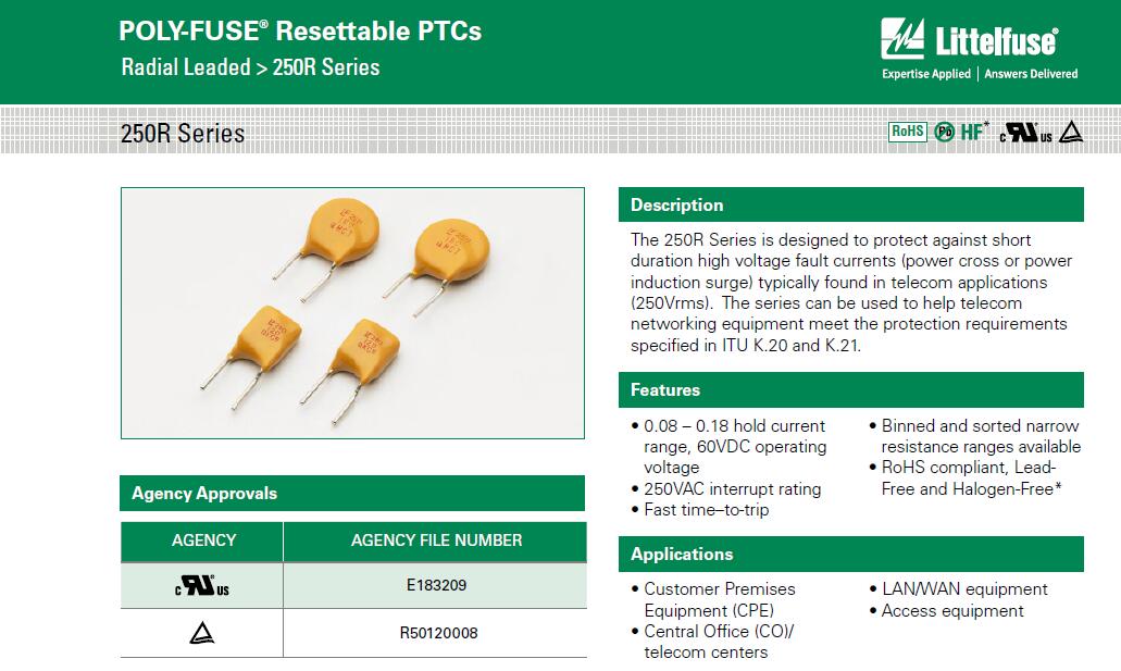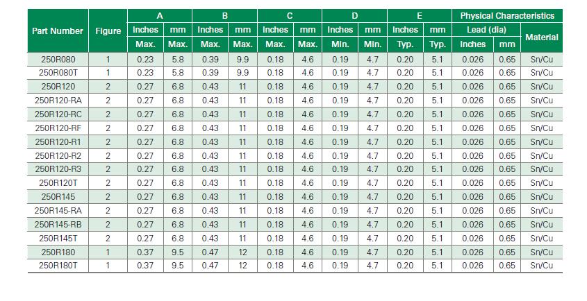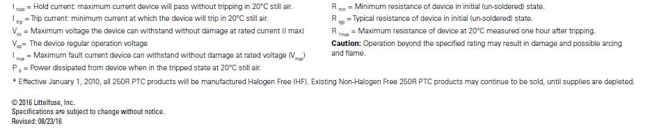 简述: POLY-FUSE® 2016 Littelfuse, Inc. Radial Leaded > 250R Series