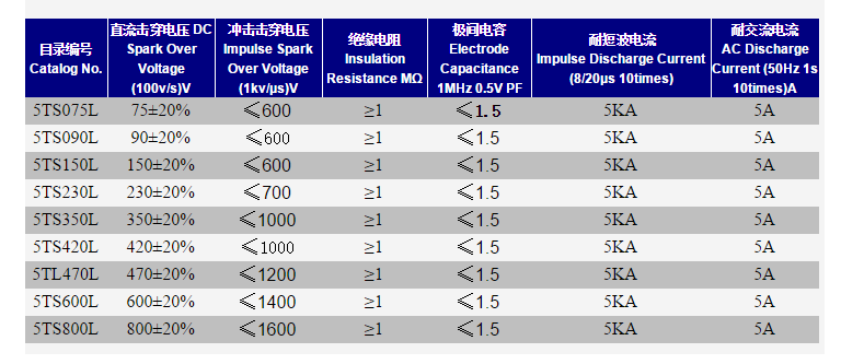 产品名称: 5TS Φ5.0x7.6 陶瓷气体放电管