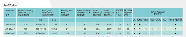 产品名称: 温度保险丝 方形25A 产品 UL认证