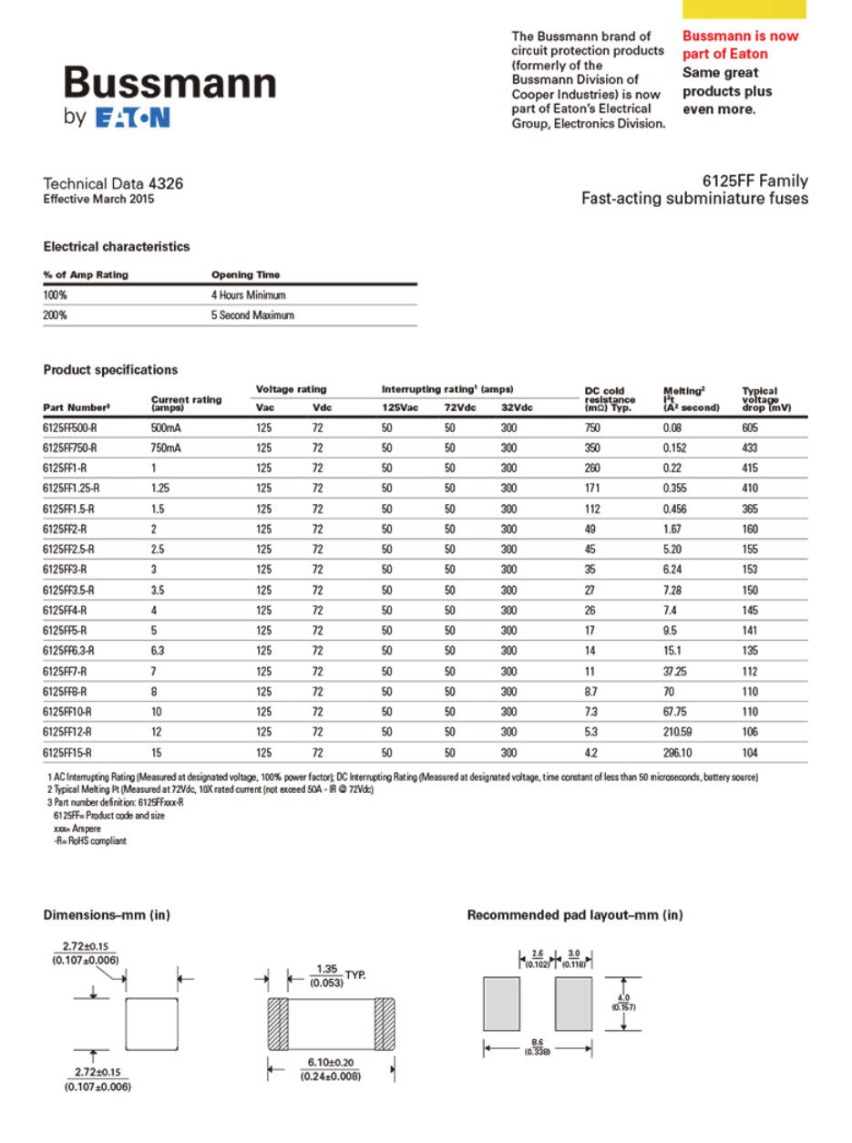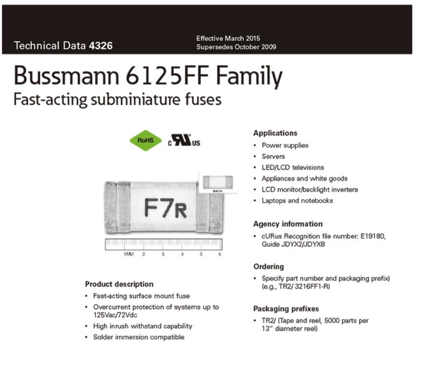 产品名称: 库柏 bussmann 6125FF贴片保险丝 迷你贴片保险丝