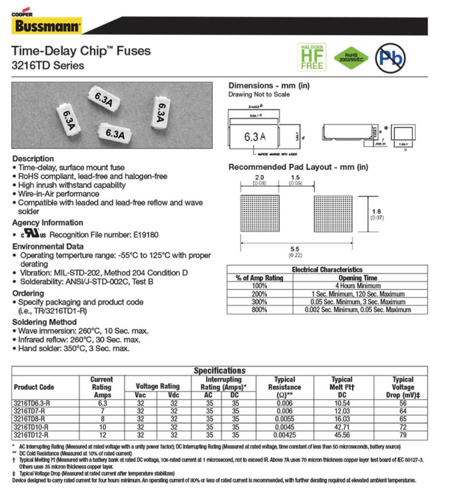产品名称: 库柏 巴斯曼 3216TD 12A一次性保险丝 陶瓷贴片