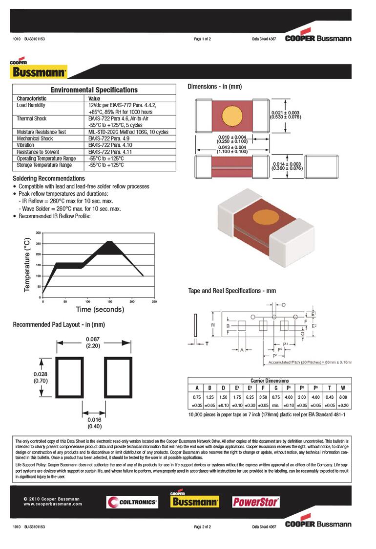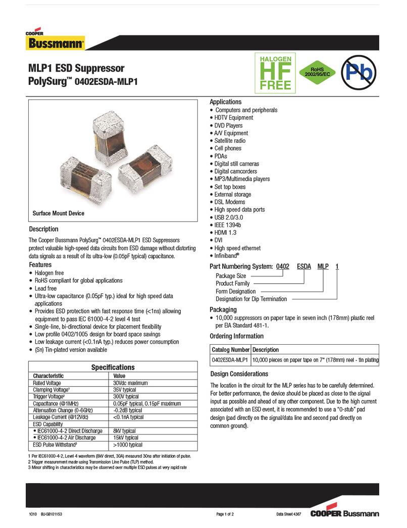 产品名称: bussmann 0402ESDA_MLP1 ESD 微型贴片保险丝 贴片保险丝