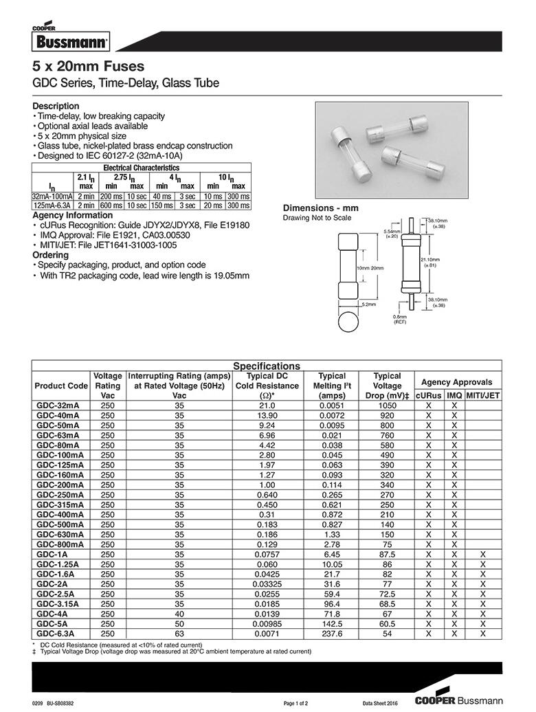 产品名称: bussmann正品 GDC系列 玻璃管保险丝