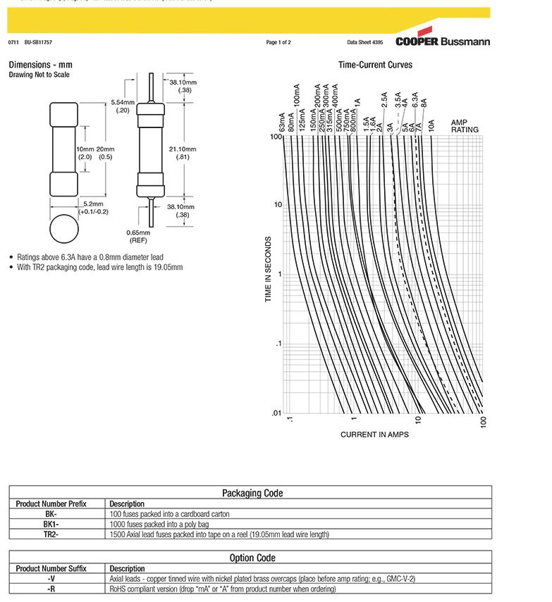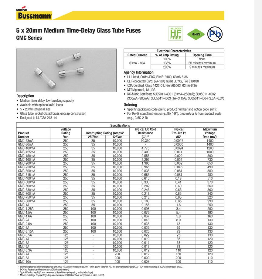 产品名称: bussmann 原包装玻璃管保险丝 GMC慢断 5*20保险丝