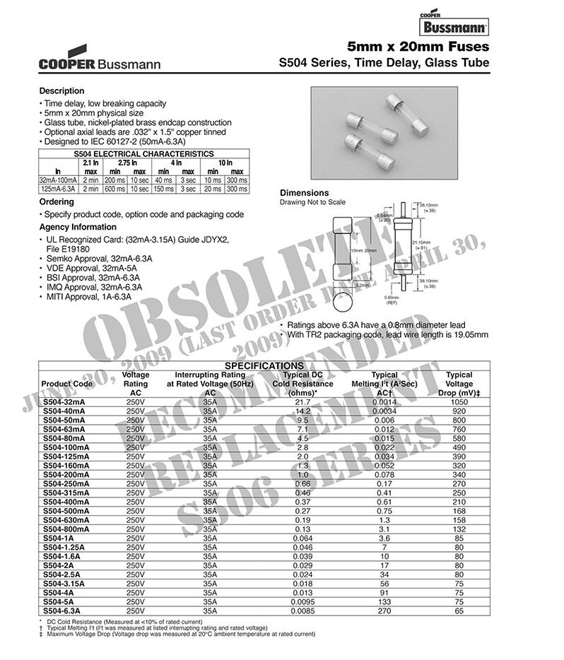 产品名称: S504玻璃管保险丝 5*20 慢断保险丝