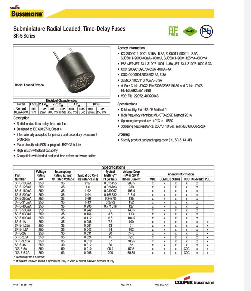 产品名称: SR-5-1A-AP 插件保险丝 小黑豆插件保险
