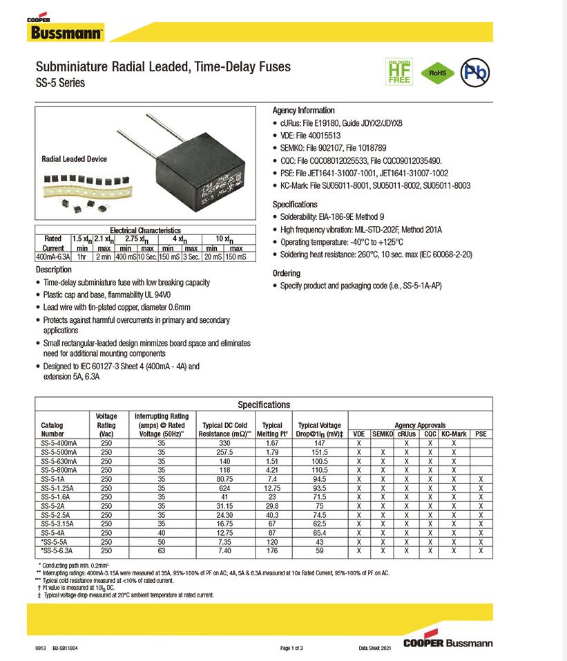 产品名称: SS-5-1A-AP 方形保险丝 塑封式保险丝