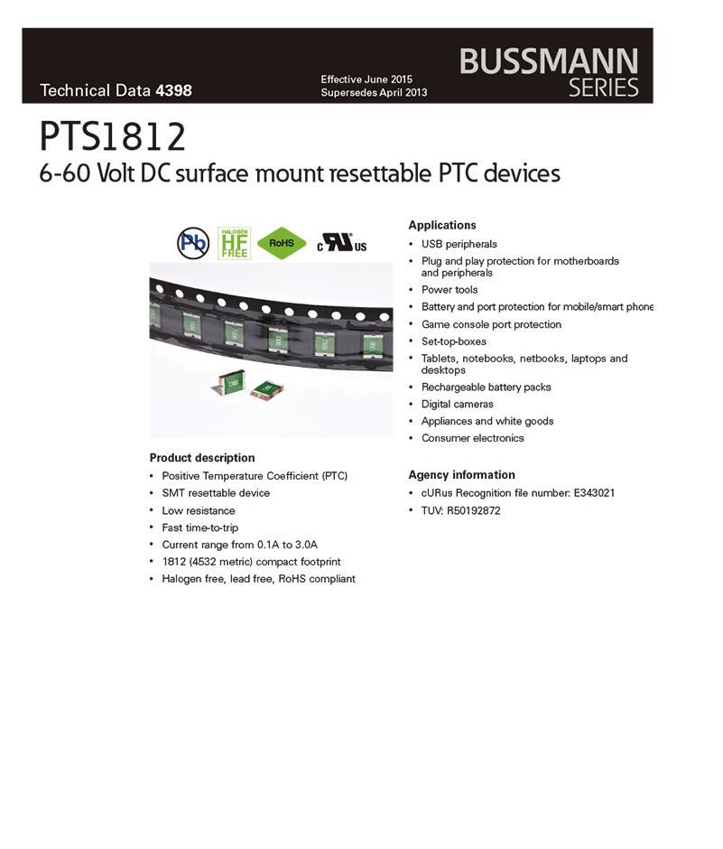 产品名称: 自恢复保险丝 PTS18128V110 贴片保险丝