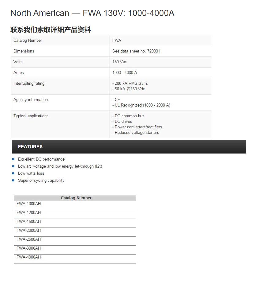 产品名称: FWA 130V: 1000-4000A快速熔断器