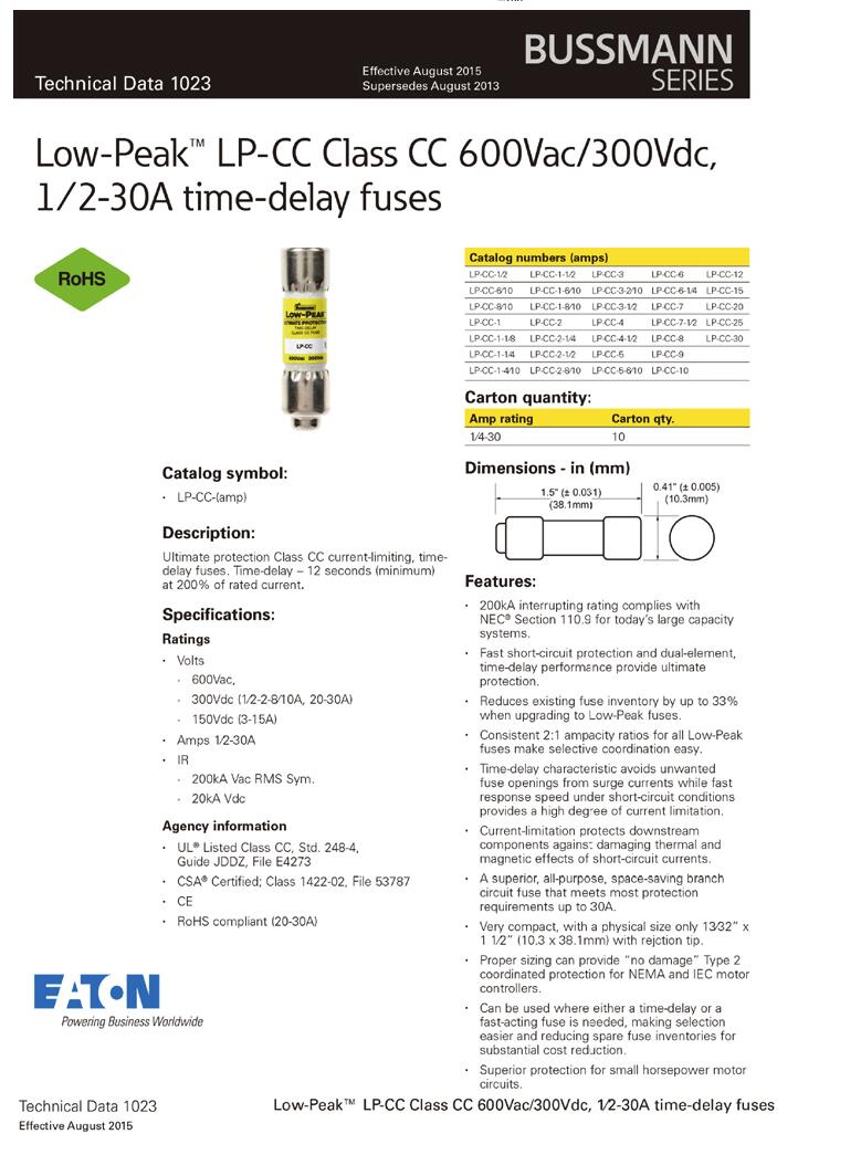 产品名称: BUSSMANN LP-CC-15 10.338.1mm熔断器