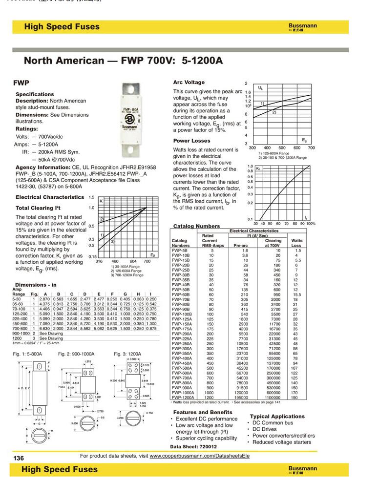 产品名称: BUSSMANN FWP-600A 700Vacdc熔断器