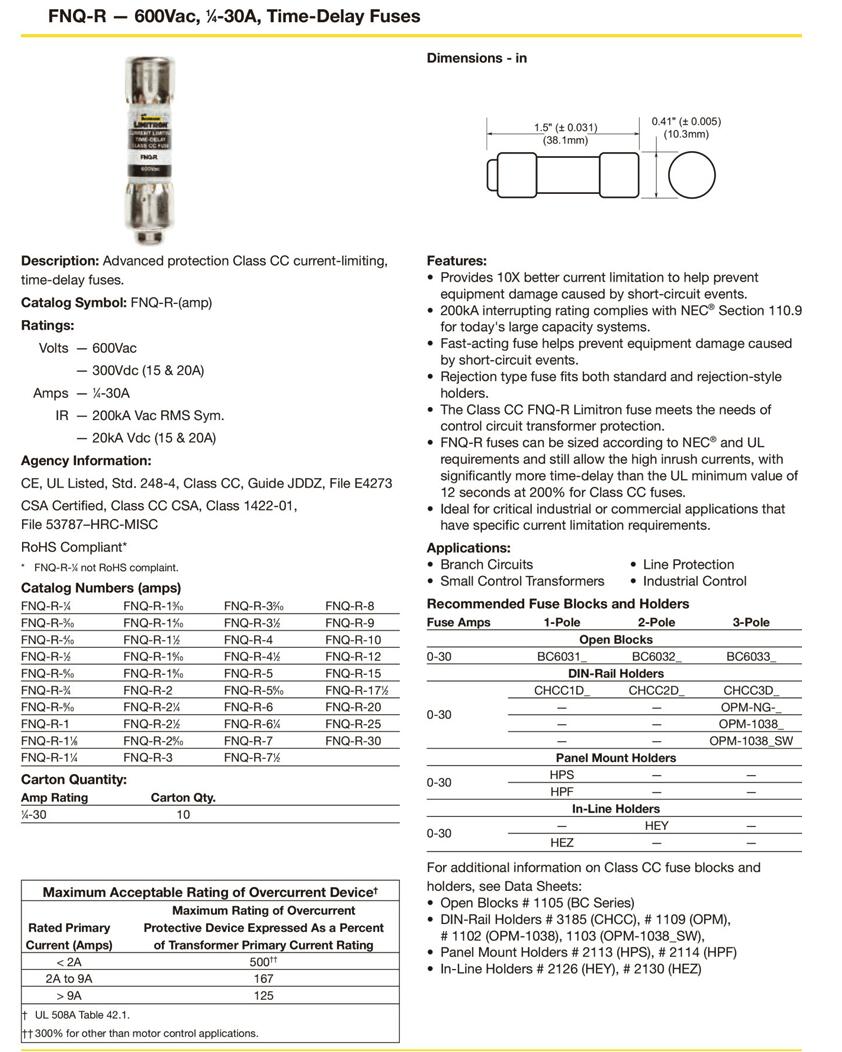下一个:BUSSMANN CHCC1DU 600V熔断器