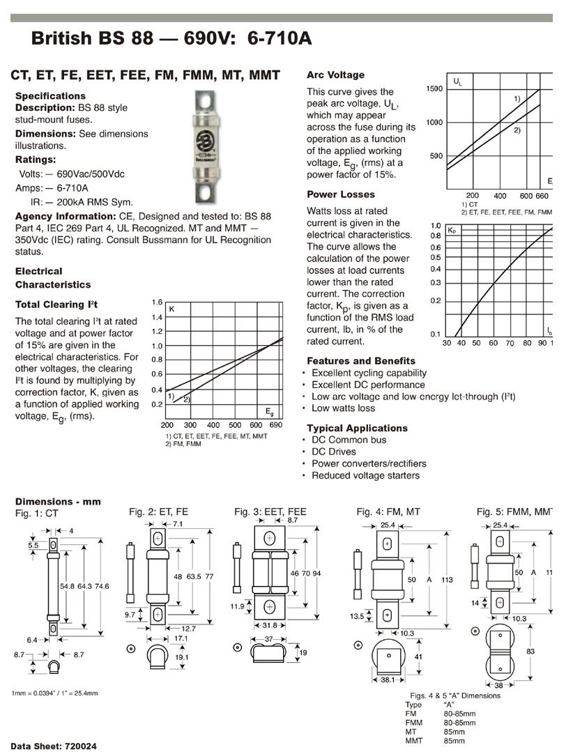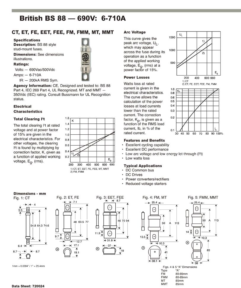 产品名称: BUSSMANN BS88 35FE 35A690V熔断器