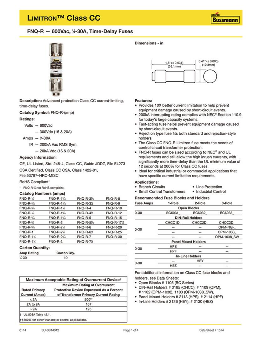 产品名称: Bussmann FNQ-R-3 10*38mm 电力保险丝 熔断器