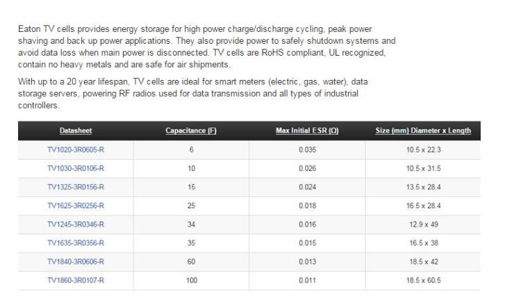 产品名称: BUSSMANN TV系列超级电容