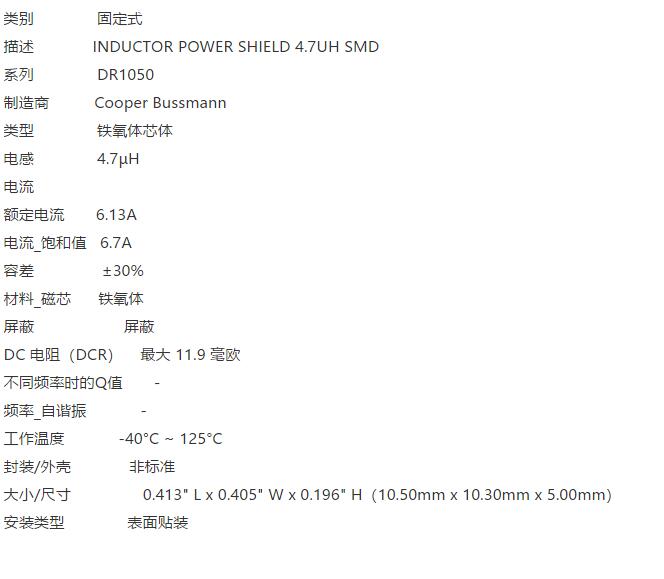 产品名称: BUSSMANN DR1050-4R7-R 电感