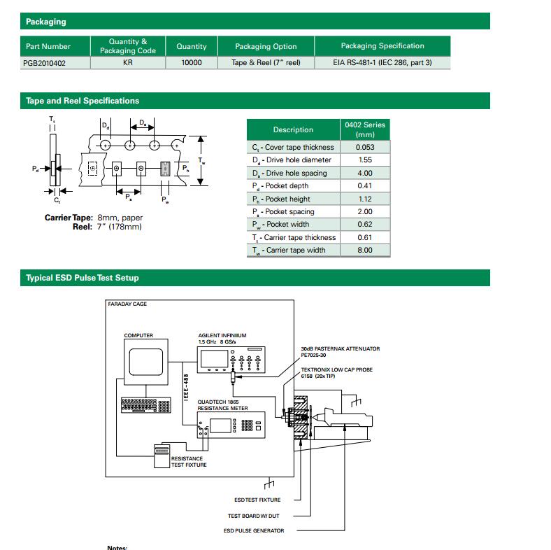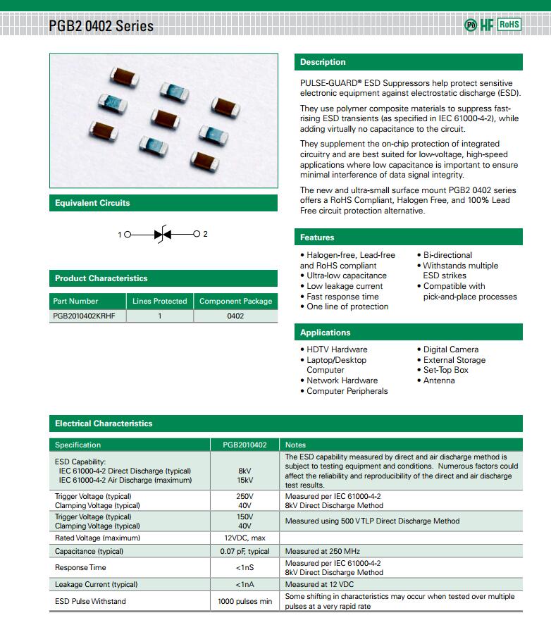 产品名称: PGB20402 系列 - 0402无铅表面贴装型聚合物ESD抑制器