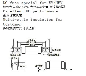 简述: DC fuse special for EV/HEV 特别为电动/混合动力汽车设计的直流熔断器