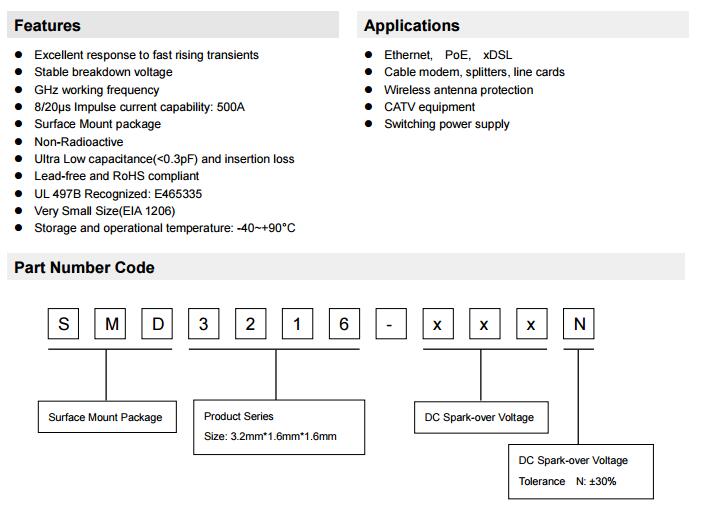 简述: SMD3216系列陶瓷气体放电管