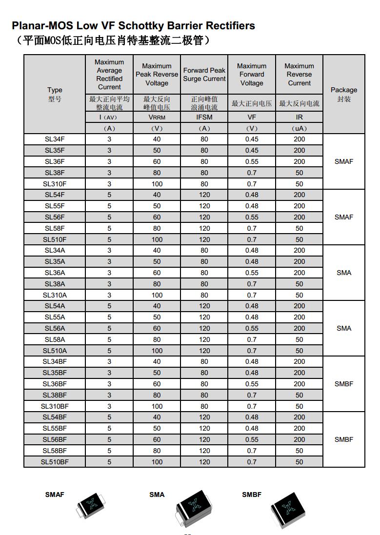 产品名称: 平面MOS低正向电压肖特基整流二极管